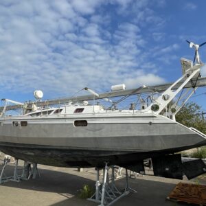 Dériveur intégral, mono safran avec relevage hydraulique, il est idéal pour naviguer sur toutes les mers du globe, y compris les plus extrêmes étant isolé au styrodur.