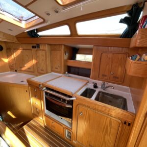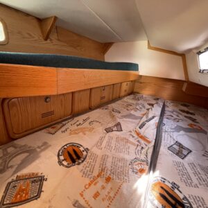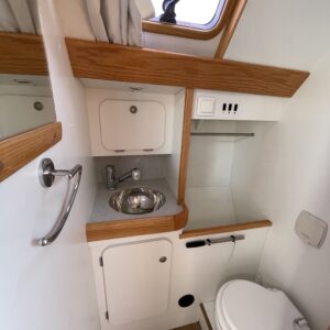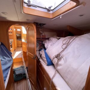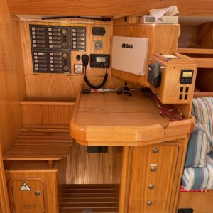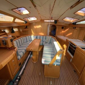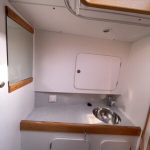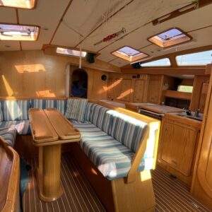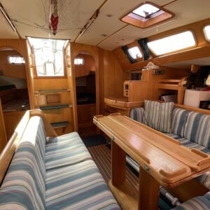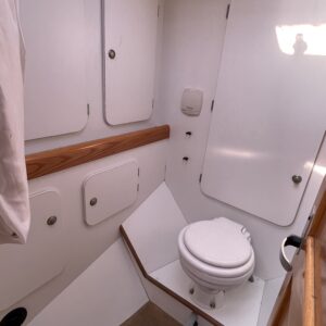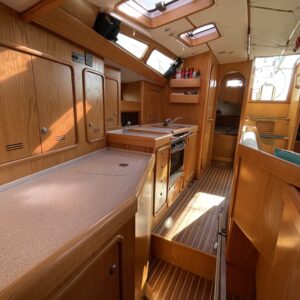 Il est aussi d’une dimension parfaite comprenant 3 cabines doubles, 2 cabinets de toilettes, un carré très convivial et une table à cartes dans le sens de la marche.